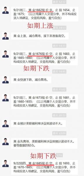 黄金昨日数据前震荡,王杨分别给了1662的多单如期上涨,然后1676反手空,直接下跌收割!王杨已经多次强调,数据前行情区间震荡为主!凌晨美联储利率决议,黄金先跌后涨再跌!反弹压力位置后,王杨果断在1685位置干空,直接下跌获利收割!日内三连胜!给力!