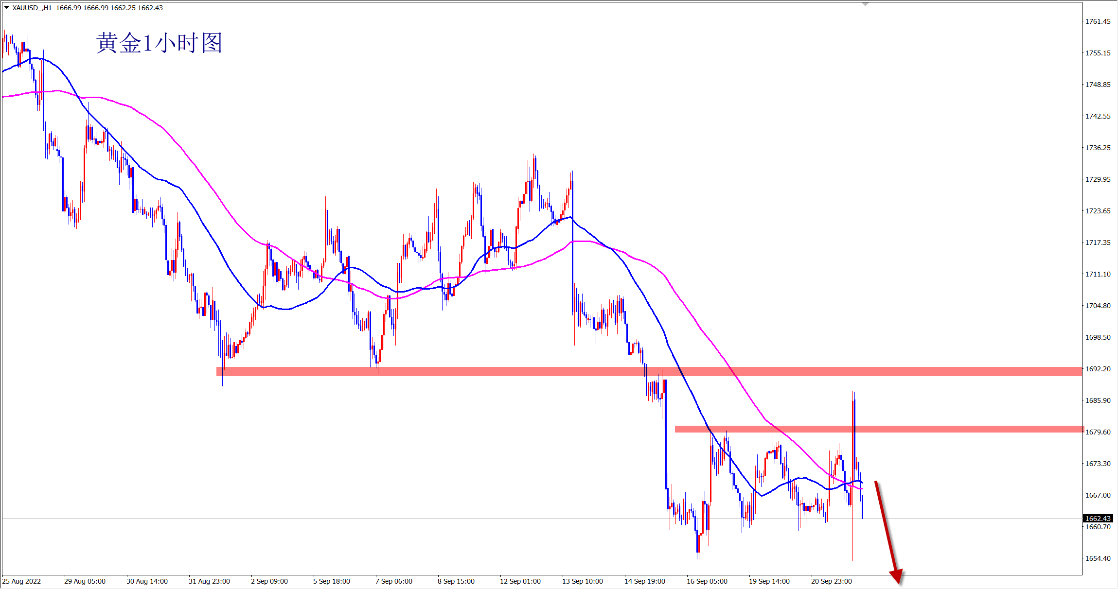 黄金当前还是震荡,但偏空走势!操作上依旧是高空看跌为主!早盘反弹遇阻压力后继续干空!1678附近直接空!上方的防守就是凌晨冲高的1688位置,此位置下空不变!