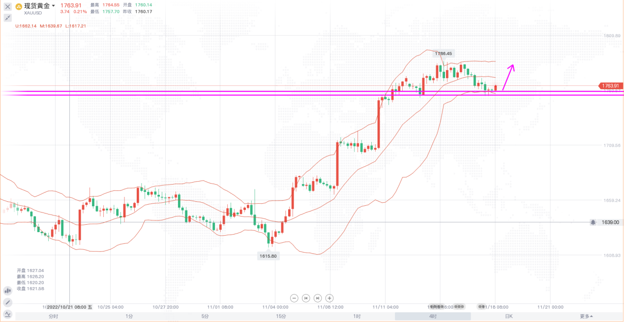黄金:回调1760-1763区域做多,止损1750,目标1780-1790