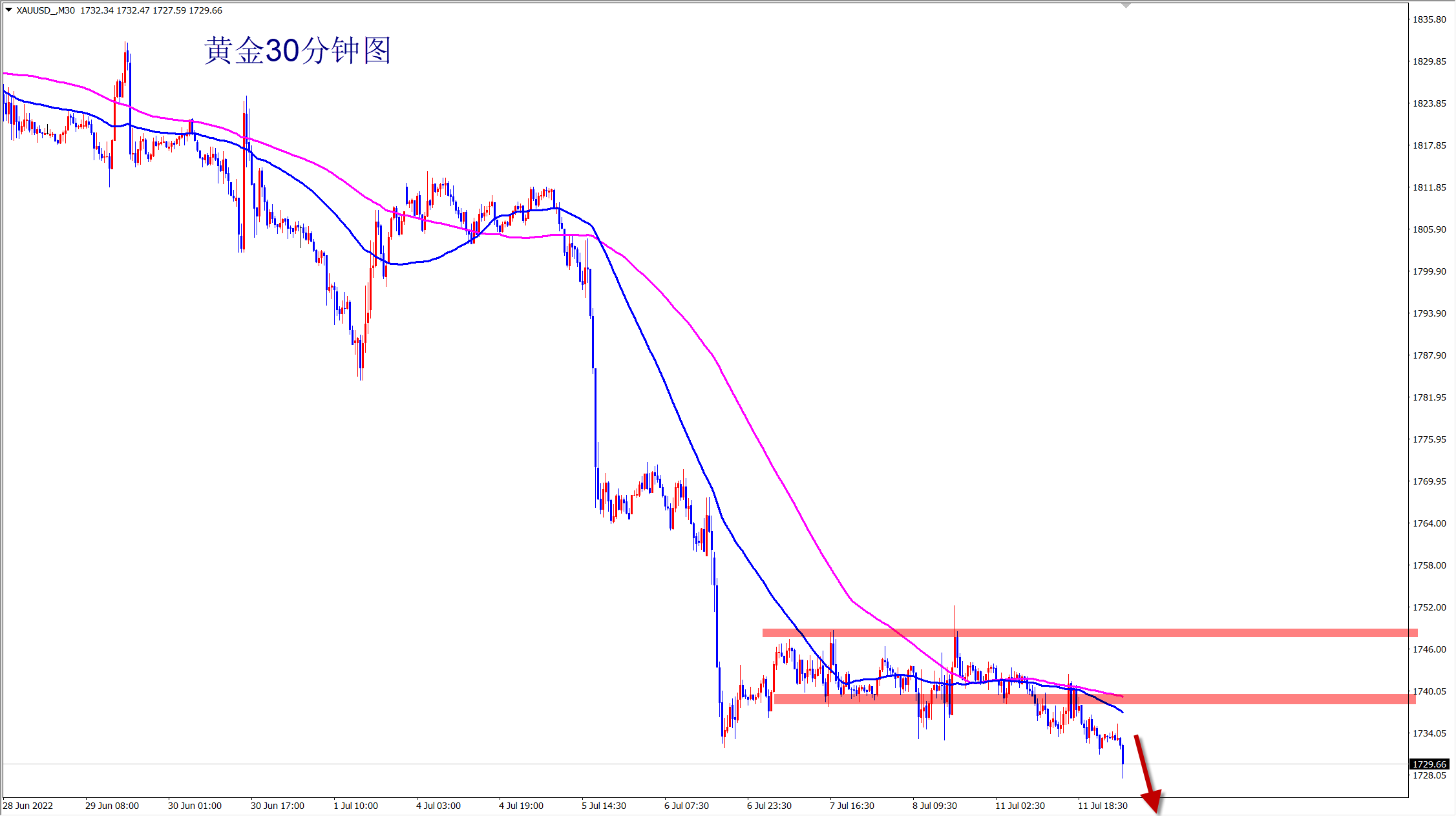 黄金跌跌不休,下跌趋势不变,压力位置继续干空!当前的压力即是1736一线,早盘依托这一位置继续空!